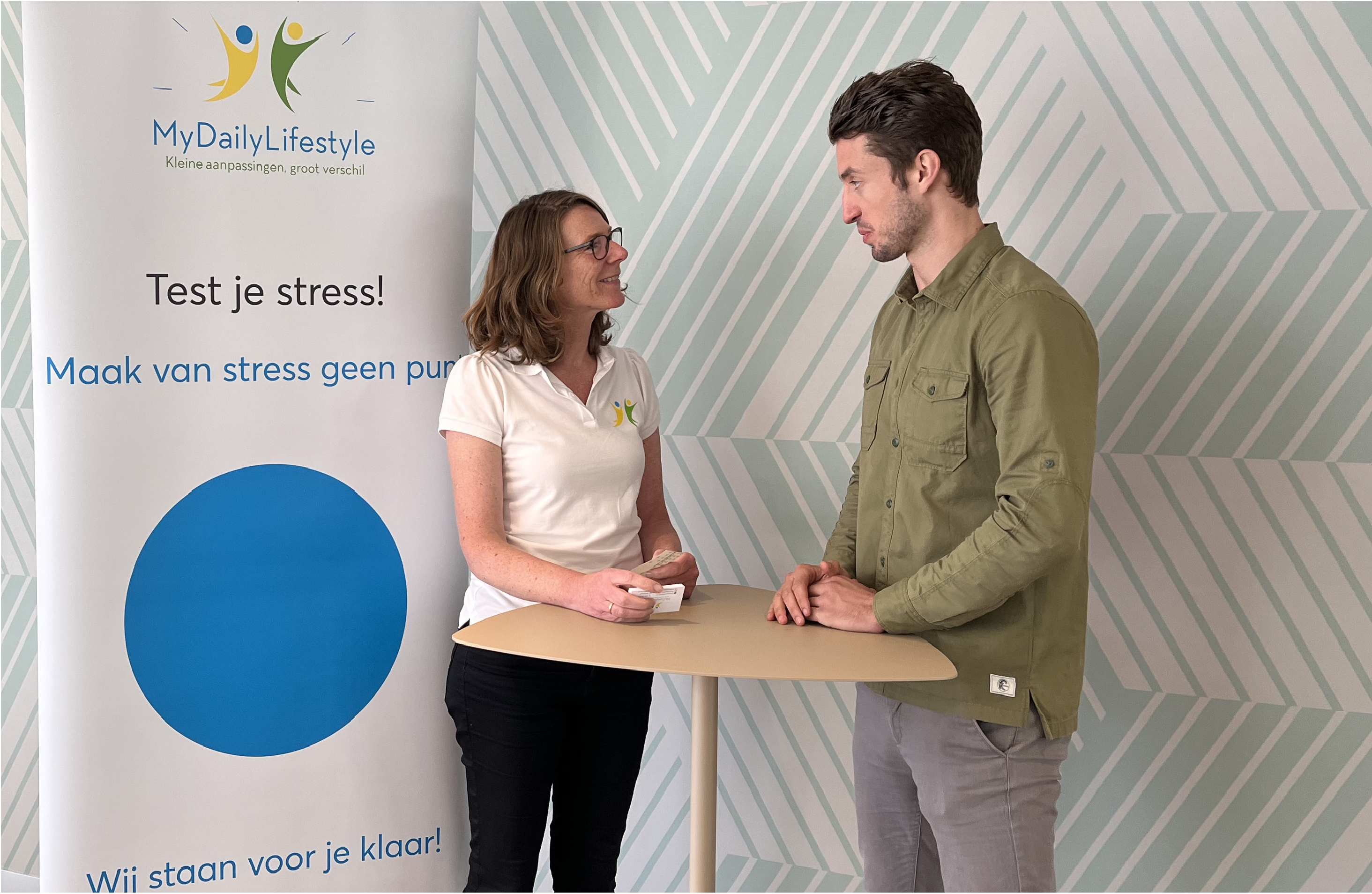 De Test je Stress stand biedt de mogelijkheid om stress en werkdruk op een laagdrempelige manier te meten en bespreekbaar te maken. Met behulp van eye-openers en gesprekskaartjes gaan medewerkers op een praktische manier zelf aan de slag met stress.Op deze wijze leiden kleine aanpassingen tot een groot verschil.